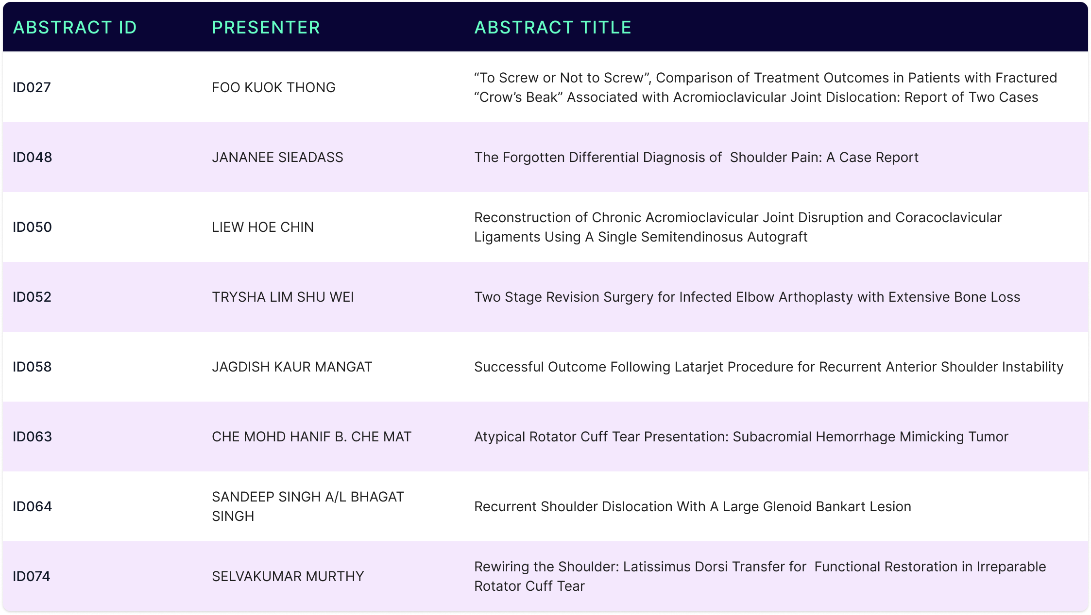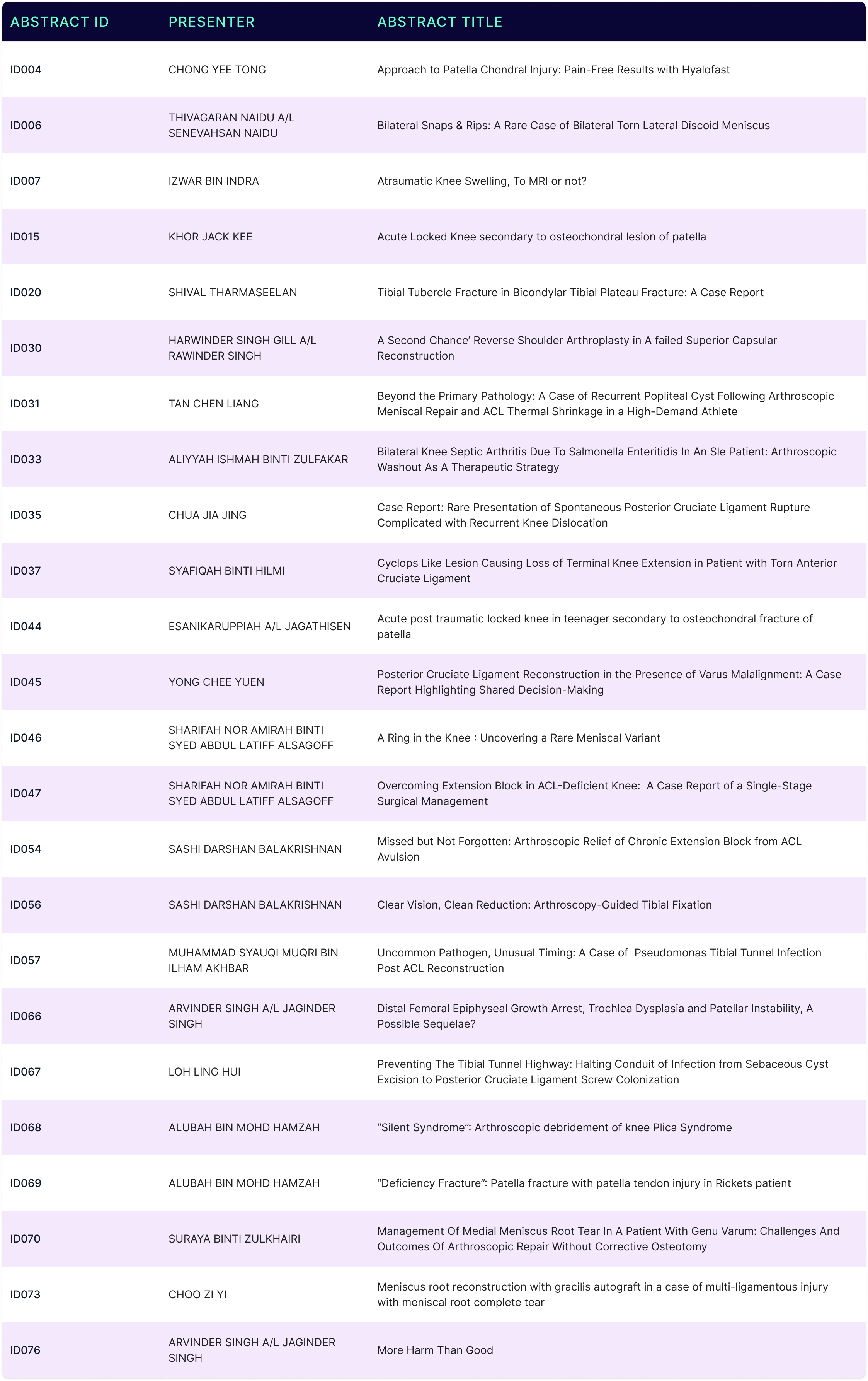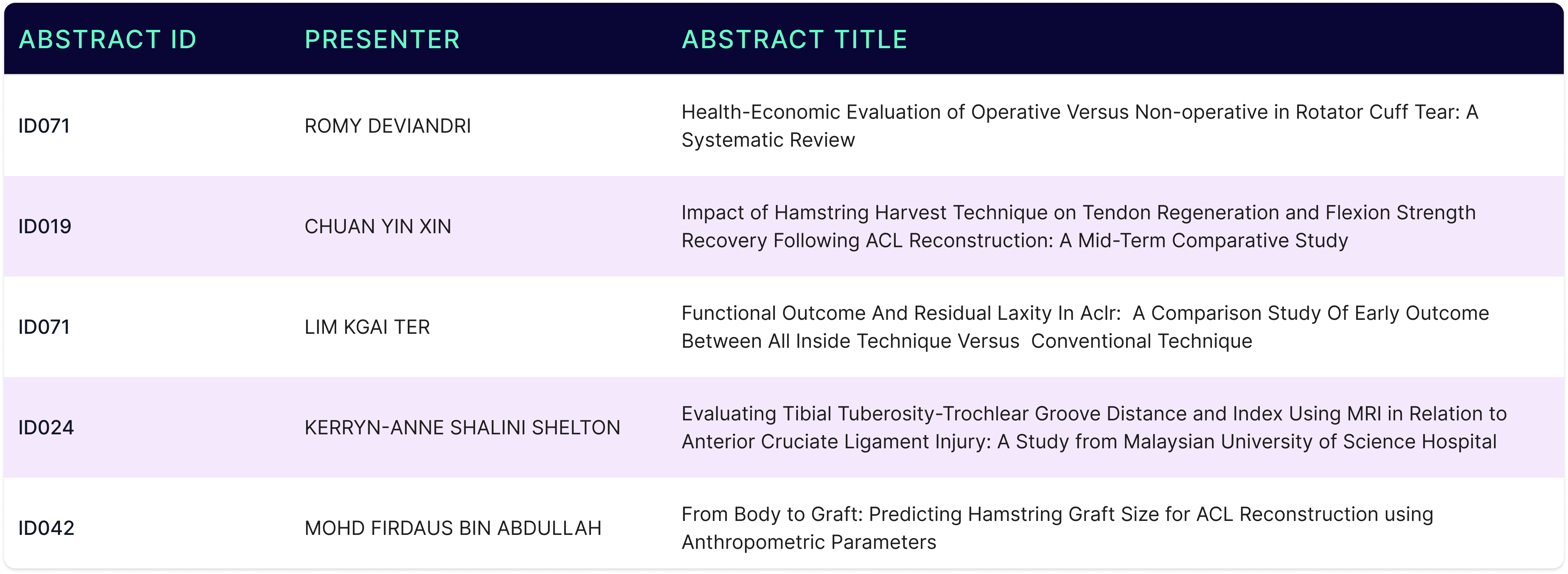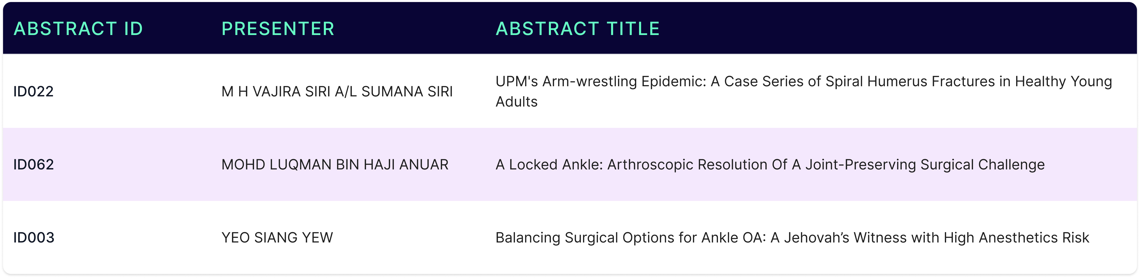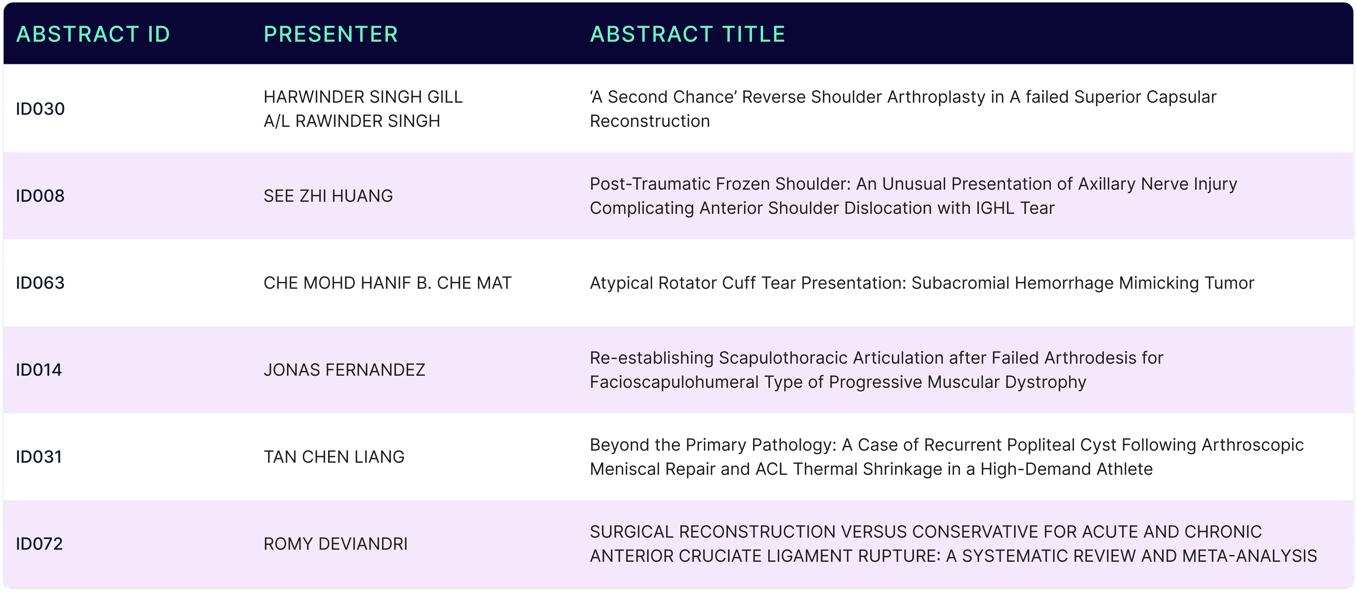 Oral presenters will be required to deliver a presentation at the congress, which includes a PowerPoint presentation with a Q&A session. The timing, location and duration of the presentation will be communicated to shortlisted presenters closer to the event date. The presentation deck must be submitted to the Conference Secretariat at abstract@masasm.org by 15th August 2025.